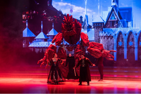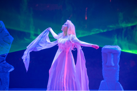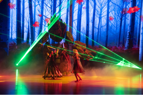 现场搭建沉浸式展演舞台,通过百万级声光电及雪花机、烟雾机制造梦幻氛围,打造舞台效果,还原逼真场景。