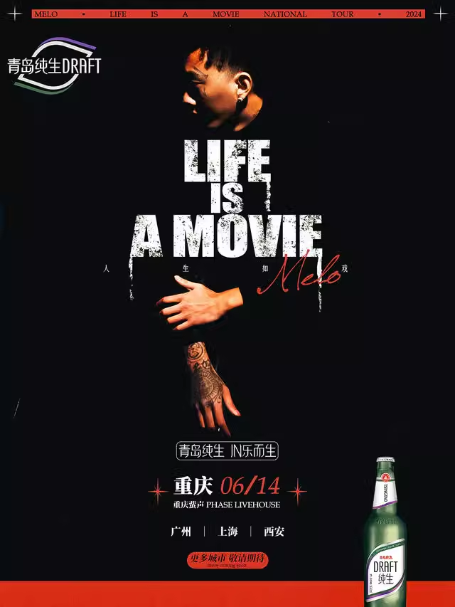 「LIFE IS A MOVIE人生如戏」全国巡演的开启,无疑会为歌迷们再度带来绝佳的音乐感受,这个夏天,让我们一起与Melo墨龙共赴一场绝无仅有的说唱音乐之旅。