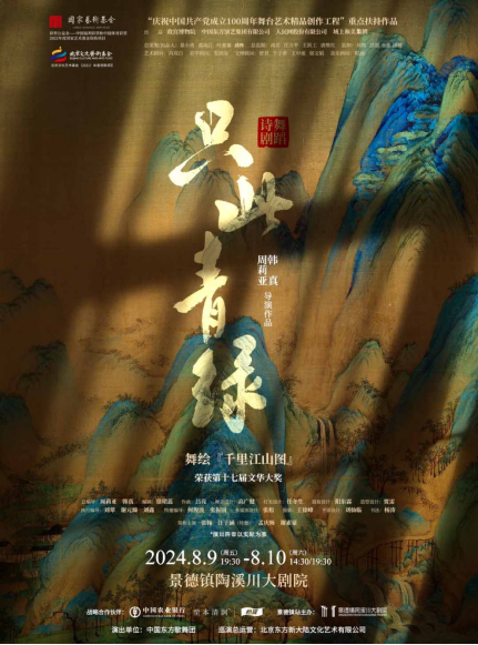 由故宫博物院、中国东方演艺集团有限公司、人民网股份有限公司,域上和美集团共同出品,中国东方歌舞团青年编导周莉亚、韩真执导,一上演就口碑大好、片段曾登上央视春晚的舞蹈诗剧《只此青绿》——舞绘『千里江山图』将于8月9日-8月10日在景德镇陶溪川大剧院连演三场。