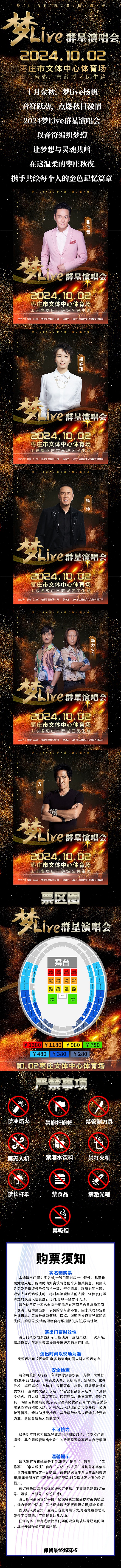 2024年10月2日,《2024梦live群星演唱会—枣庄站》即将璀璨启幕,齐秦、动力火车、杨坤、梁咏琪、张信哲等华语乐坛巨星齐聚一堂,用音乐编织梦想,打造视听盛宴。这场演唱会不仅是音乐的狂欢,更是心灵的触碰。在金秋的枣庄,让我们一同沉浸在这份音乐的热情中,感受旋律的起伏,与偶像共赴一场难忘的音乐之旅,享受这场视听与心灵的双重盛宴。金秋枣庄,梦live启航,让音乐连接你我,共筑美好回忆。
