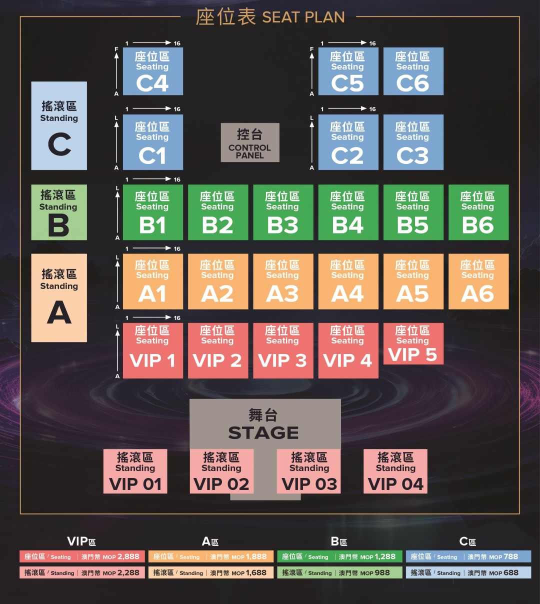 温馨提示:摇滚区只适合12岁或以上,及身高不少于140厘米之人士,VIP摇滚区视线可能会受阻。