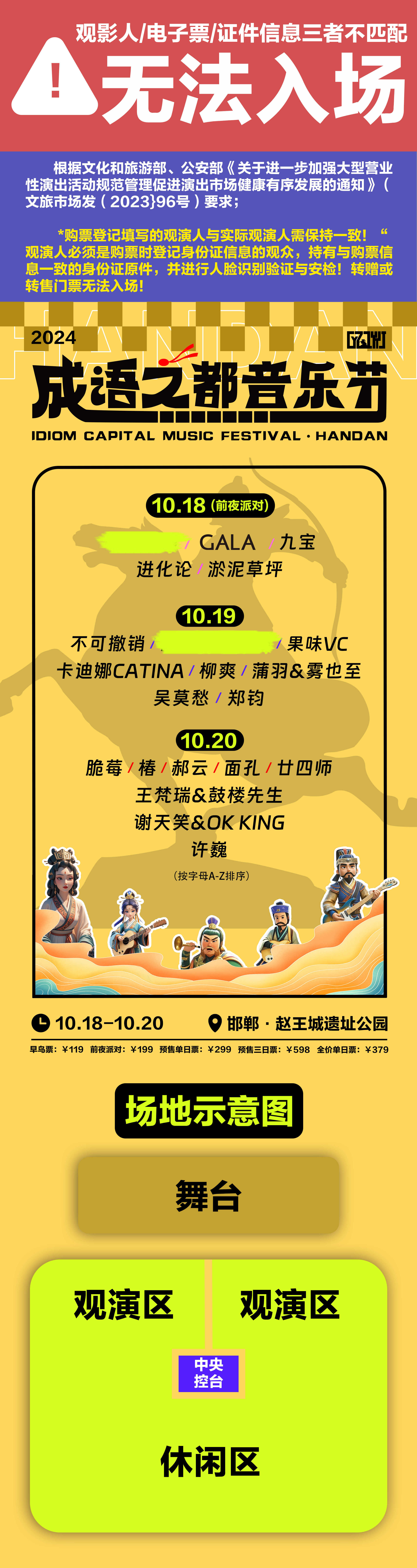 1.演出票品为特殊商品,除不可抗力因素导致演出取消外,订单不支持退换,可在平台转售; 2.演出详情仅供参考,具体以主办方公布信息及现场为准,请准时到场以免错过演出; 3.有票官方确保售出票品真实有效,请放心购买; 4.根据演出火爆情况,有票平台可能会将您所选的快递送票、上门自取等取票方式调整为现场取票,敬请谅解; 5.平台会尽力促使卖家履行交易协议,如果卖家付票过程中发生问题,本平台可协调相同或更高票挡的票品代替,否则平台将全额退款并按订单上约定的赔付方式与金额向用户进行赔付; 6.为了安全起见需要本人签收,演出快递票均为快递费到付(不包邮),请知晓!