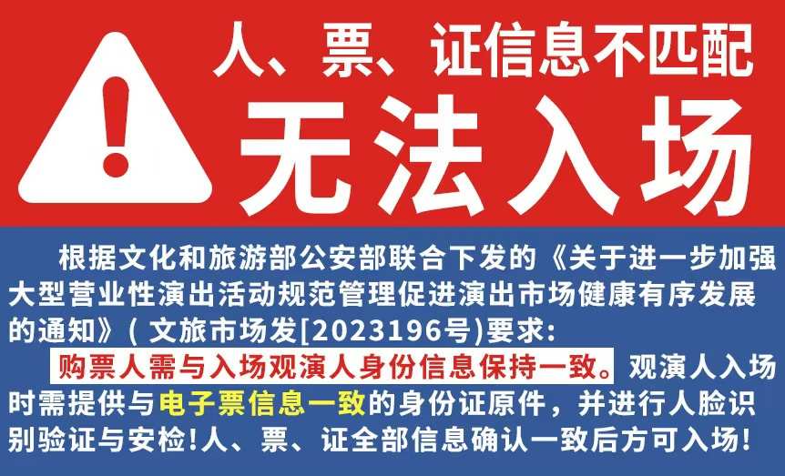 1.演出票品为特殊商品,除不可抗力因素导致演出取消外,订单不支持退换,可在平台转售; 2.演出详情仅供参考,具体以主办方公布信息及现场为准,请准时到场以免错过演出; 3.有票官方确保售出票品真实有效,请放心购买; 4.根据演出火爆情况,有票平台可能会将您所选的快递送票、上门自取等取票方式调整为现场取票,敬请谅解; 5.平台会尽力促使卖家履行交易协议,如果卖家付票过程中发生问题,本平台可协调相同或更高票挡的票品代替,否则平台将全额退款并按订单上约定的赔付方式与金额向用户进行赔付; 6.为了安全起见需要本人签收,演出快递票均为快递费到付(不包邮),请知晓!