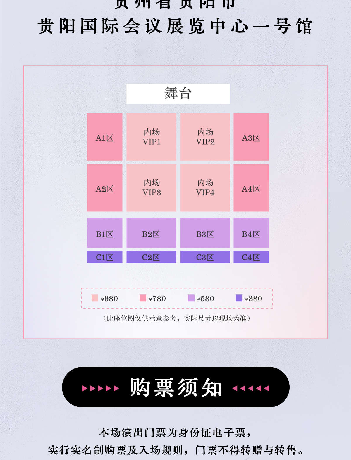1.演出票品为特殊商品,除不可抗力因素导致演出取消外,订单不支持退换,可在平台转售; 2.演出详情仅供参考,具体以主办方公布信息及现场为准,请准时到场以免错过演出; 3.有票官方确保售出票品真实有效,请放心购买; 4.根据演出火爆情况,有票平台可能会将您所选的快递送票、上门自取等取票方式调整为现场取票,敬请谅解; 5.平台会尽力促使卖家履行交易协议,如果卖家付票过程中发生问题,本平台可协调相同或更高票挡的票品代替,否则平台将全额退款并按订单上约定的赔付方式与金额向用户进行赔付; 6.为了安全起见需要本人签收,演出快递票均为快递费到付(不包邮),请知晓!