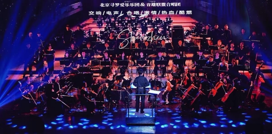 本场演出乐团是一支集古典与时尚于一身的音乐新势力—北京寻梦爱乐乐团。他们既保留了古典的风格,又融合了当下的流行元素。通过电子合成器、民乐乐器与管弦乐队混合的编制,结合现代作曲、编曲和高科技的表现手法,使其演奏不仅具有大型交响乐团的震撼效果,更是将每种乐器演奏的音符展现的沁人心脾,给人前所未有的新奇潮流体验。