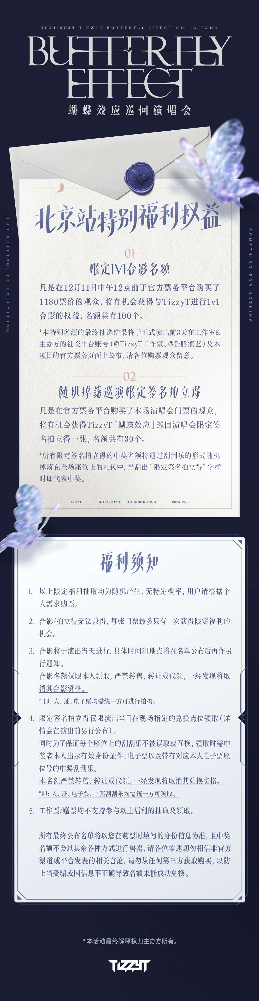 在不断的绽放、着色中再度启程,步入全新旅程阶段的TizzyT,以诚意筹备回馈约定,再次奔赴「蝴蝶效应」之旅,世界巡回演唱会计划北京站正式官宣。