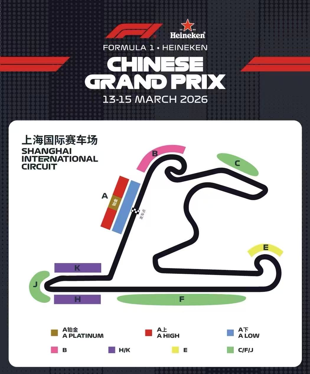 上海奥迪国际赛道的总长度为5451.24米,具有7处左转弯道及7处右转弯道。平均时速205公里。最长的直道长度为1175米,位于弯道T13和T14之间。赛道的宽度在13-15米之间,一般为14米,在弯道处加宽到最 大20米(弯道T14/T15)。其他有特色的赛道设计为:螺线型收缩的弯道(弯道T1到T3),其半径从R=93.90米变为R=31.8米,故进弯有多条赛车线,舒马赫曾于2006,在此这里利用不同的赛车线,超越阿隆索,并获得了他最后一个分站冠军;螺线型展宽的弯道(弯道T11到T13),其半径从R=8.80米增加到R=120.55米;还有两处急转弯道,曲线半径分别为R=18.70米(T6)和R=10.07米(T14)。