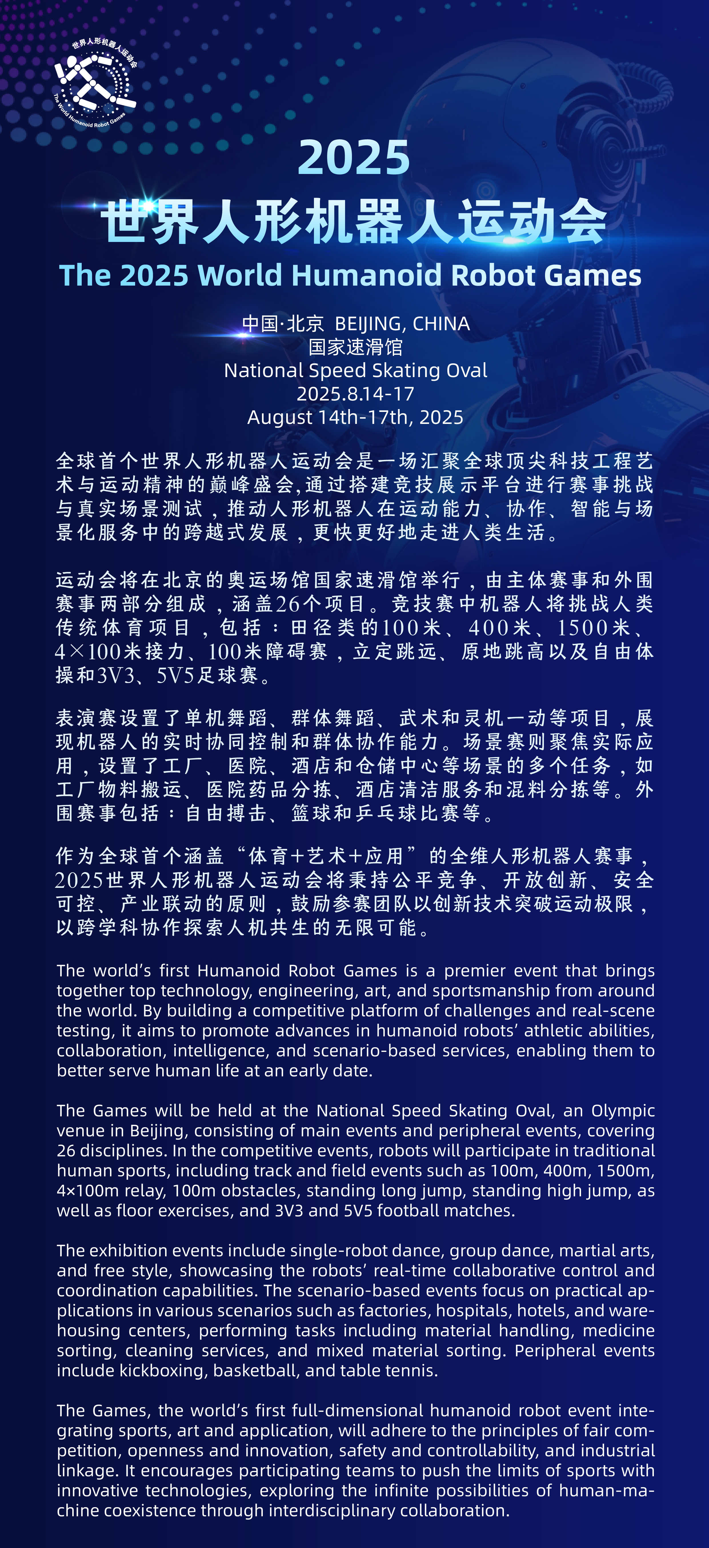 The 2025 World Humanoid Robot Games will be held at the National Speed Skating Oval (the Ice Ribbon) from August 14 to 17.