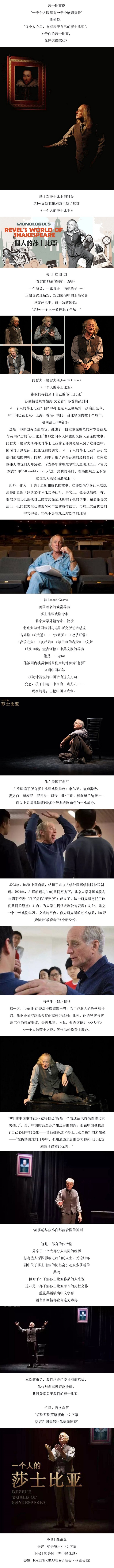 纪念莎翁诞辰462周年•英文原版戏剧《一个人的莎士比亚》北京站