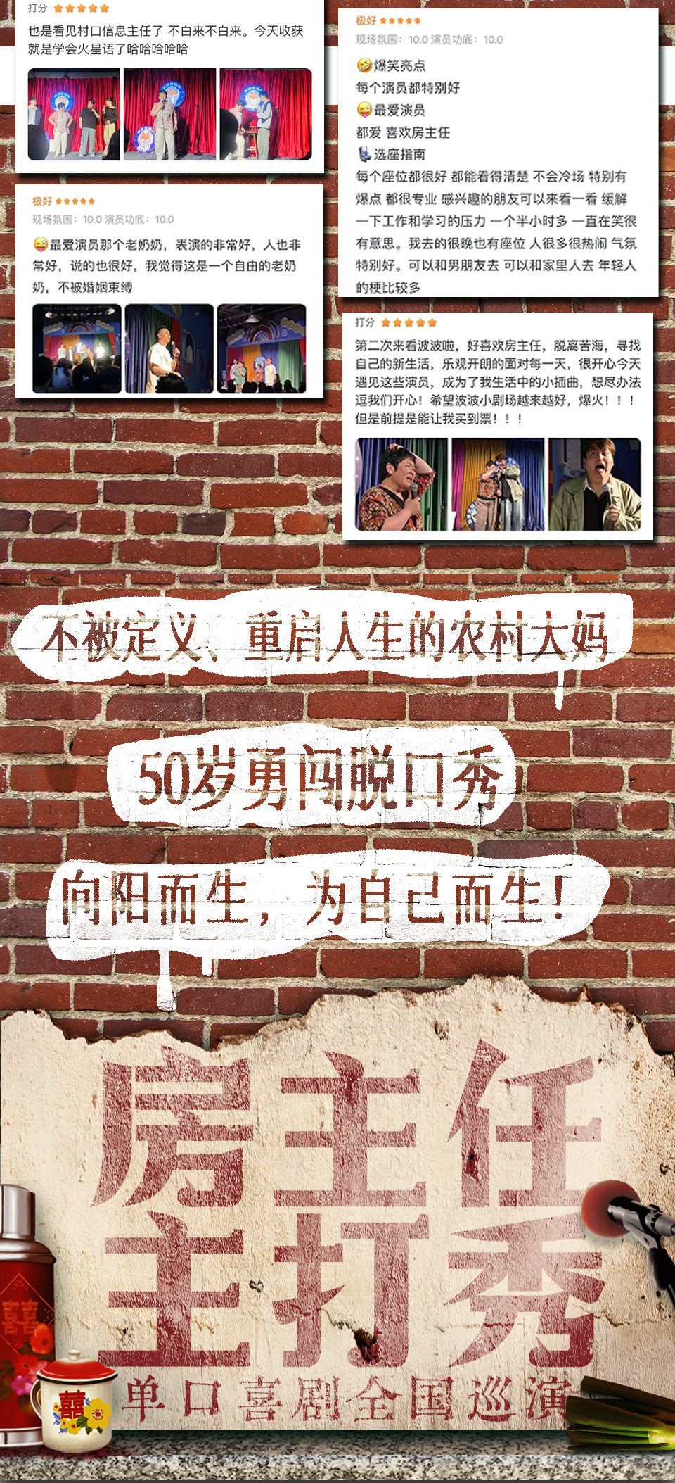 2-本场演出为《房主任主打秀》拼场演出,全程约90分钟,房主任表演时长不低于45分钟~