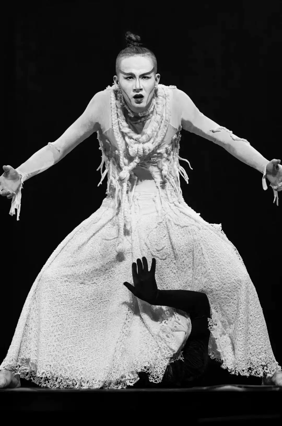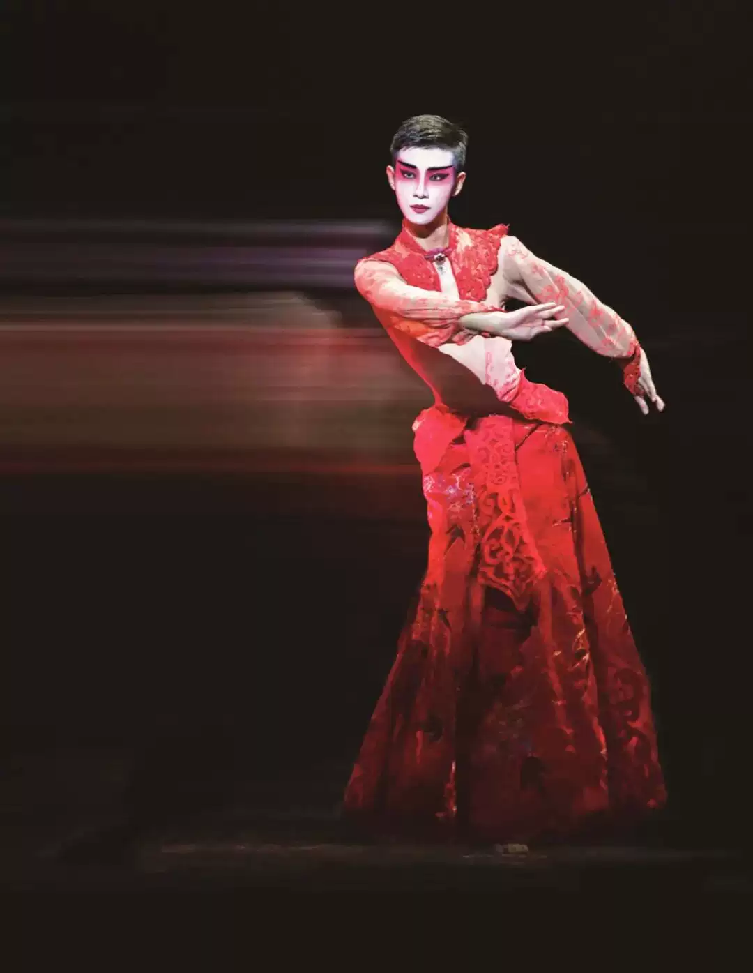 她就是爱情本身,她就是唯美本身。她是西楚霸王项羽的爱人。她,倾国倾城,才艺双绝,舞姿美艳。她,是剧中唯一的女性角色,在这个作品中也如传统京剧中的旦角一样,由男舞者反串。所以她,刚柔并济。为了让爱人无有后顾之忧,她毅然自刎在爱人的怀中,肉体的毁灭却造就了这段爱情的永恒,她和她的爱情超然于功名成败之外,她如同暗夜中的一点烛光,美好、易碎,却为人们的内心带来些许希望和抚慰。