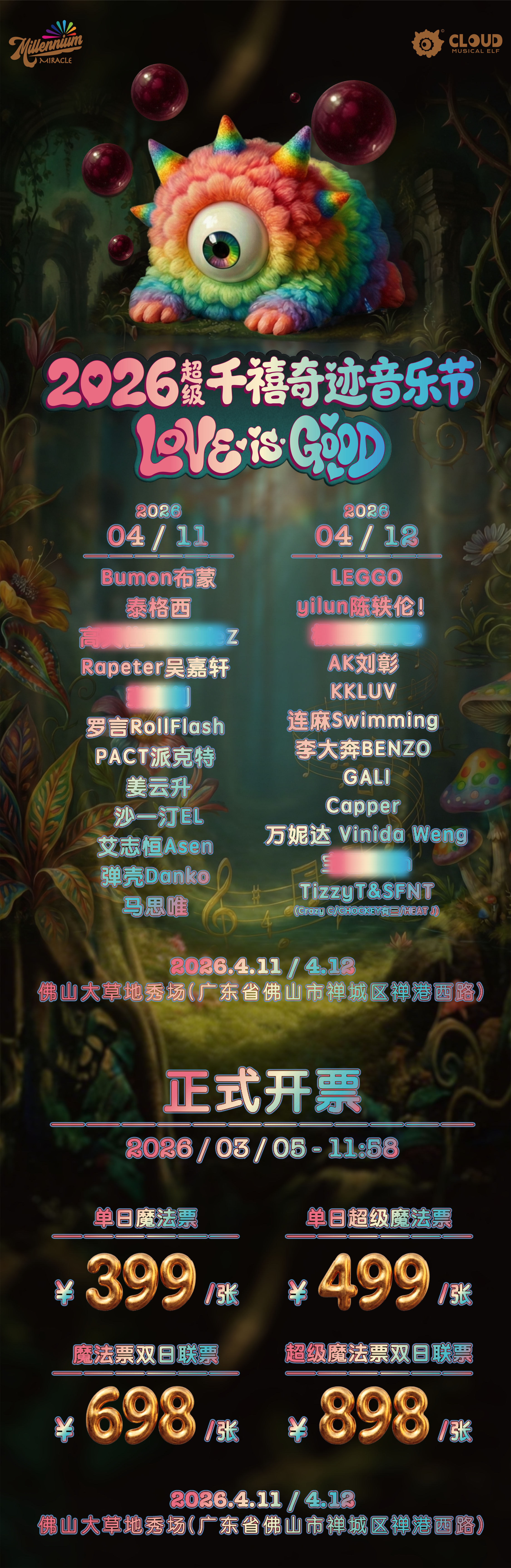 「马思唯/刘彰/万妮达」2026超级千禧奇迹音乐节-佛山站