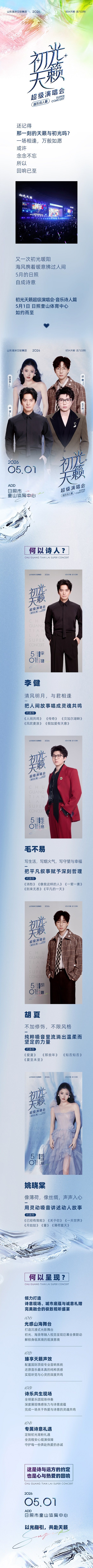 首页 > 演唱会 > 「李健/毛不易/胡夏/姚晓棠」日照初光天籁超级演唱会 音乐诗人篇