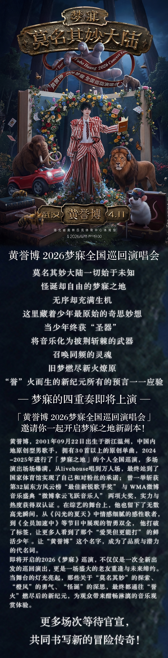 首页 > 演唱会 > 2026黄誉博《梦寐·莫名其妙大陆》演唱会-武汉站