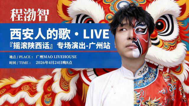 2026 年西安原创音乐领军人物程渤智携现象级神曲《西安人的歌》强势登陆广州 MAO Livehouse!这首创造160亿次播放奇迹的城市音乐图腾,以全新摇滚编曲混搭陕西方言韵脚,打造三秦大地的音乐奇观。