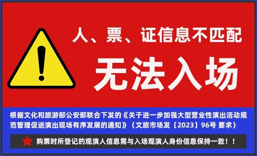 1.演出票品为特殊商品,除不可抗力因素导致演出取消外,订单不支持退换,可在平台转售; 2.演出详情仅供参考,具体以主办方公布信息及现场为准,请准时到场以免错过演出; 3.有票官方确保售出票品真实有效,请放心购买; 4.根据演出火爆情况,有票平台可能会将您所选的快递送票、上门自取等取票方式调整为现场取票,敬请谅解; 5.平台会尽力促使卖家履行交易协议,如果卖家付票过程中发生问题,本平台可协调相同或更高票挡的票品代替,否则平台将全额退款并按订单上约定的赔付方式与金额向用户进行赔付; 6.为了安全起见需要本人签收,演出快递票均为快递费到付(不包邮),请知晓!