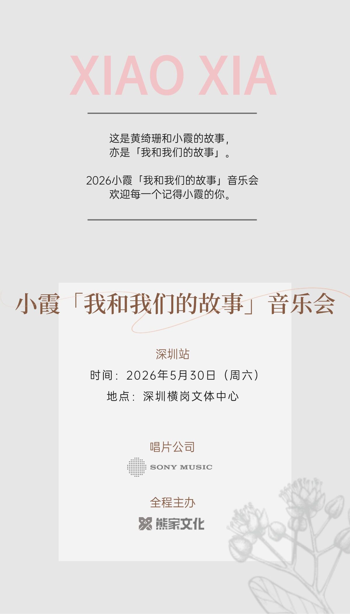 首页 > 演唱会 > 2026黄绮珊 小霞「我和我们的故事」音乐会·深圳专场