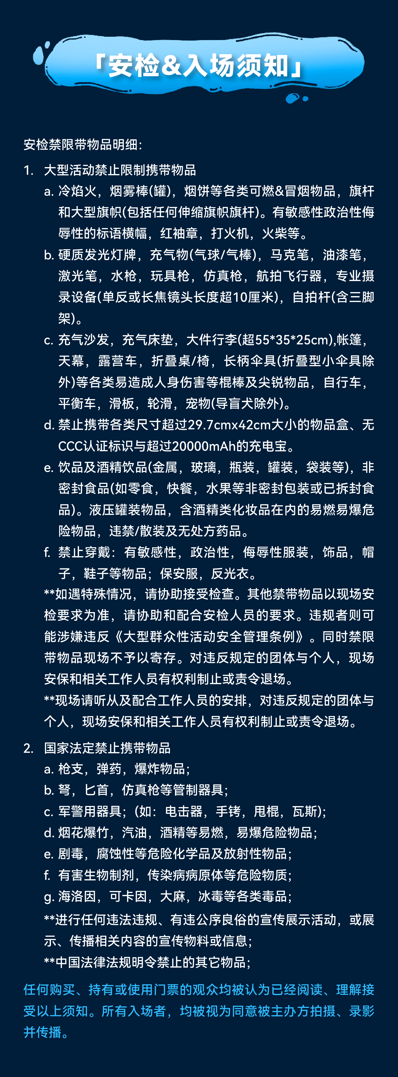 1.演出票品为特殊商品,除不可抗力因素导致演出取消外,订单不支持退换,可在平台转售; 2.演出详情仅供参考,具体以主办方公布信息及现场为准,请准时到场以免错过演出; 3.有票官方确保售出票品真实有效,请放心购买; 4.根据演出火爆情况,有票平台可能会将您所选的快递送票、上门自取等取票方式调整为现场取票,敬请谅解; 5.平台会尽力促使卖家履行交易协议,如果卖家付票过程中发生问题,本平台可协调相同或更高票挡的票品代替,否则平台将全额退款并按订单上约定的赔付方式与金额向用户进行赔付; 6.为了安全起见需要本人签收,演出快递票均为快递费到付(不包邮),请知晓!