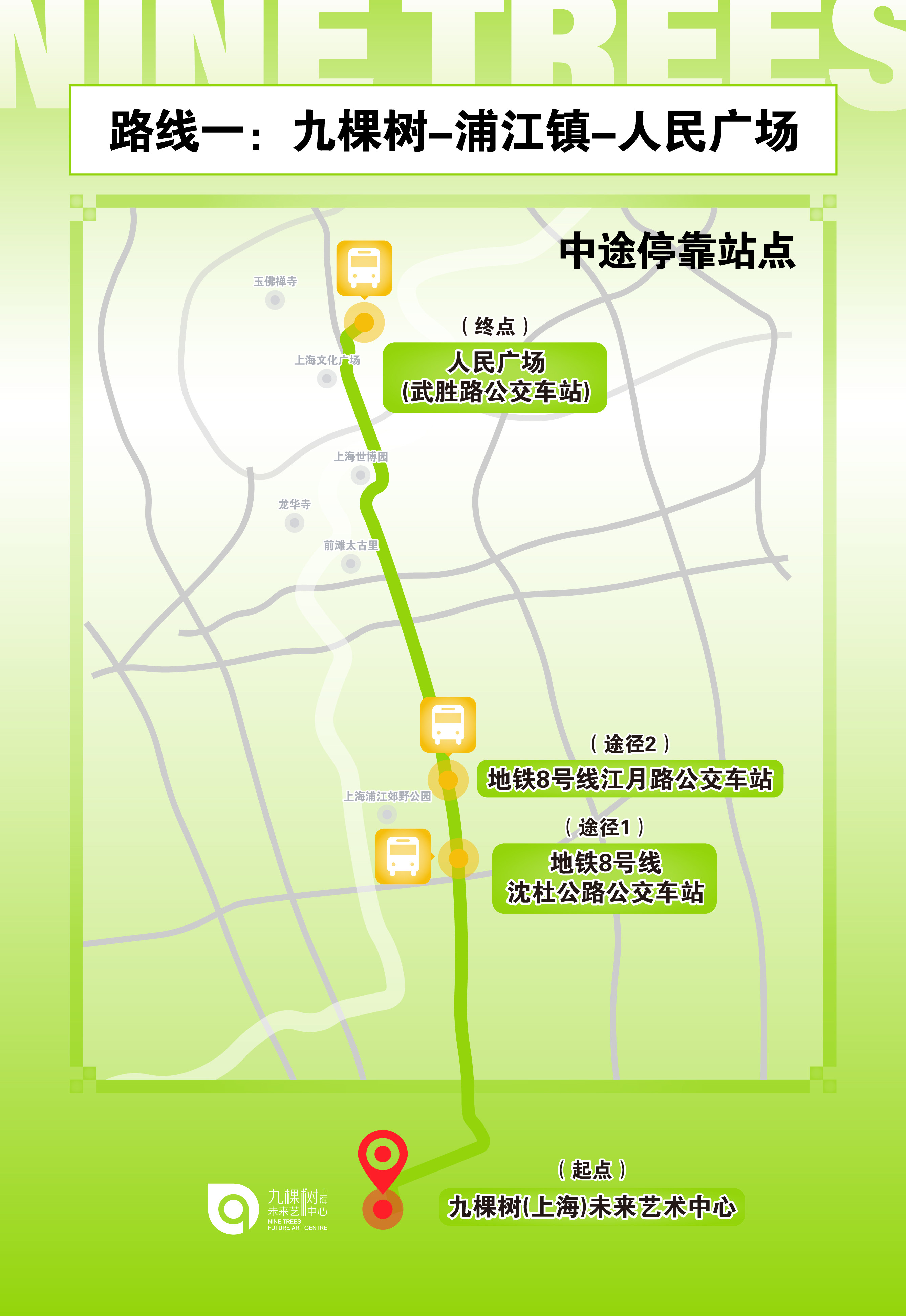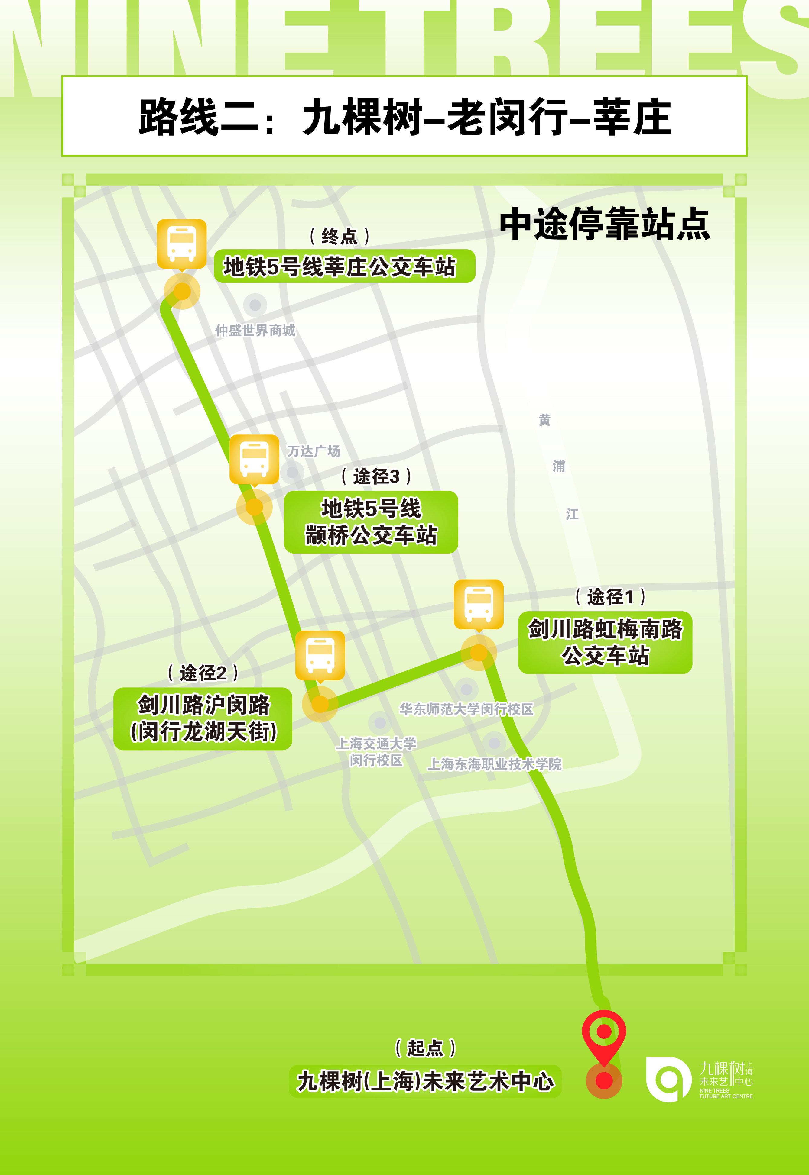 *【免费接驳车】本场演出九棵树将对购票观众在演出结束后提供免费接驳车服务,公交大巴由【九棵树未来艺术中心】出发开往人民广场、莘庄两大方向,途径浦江镇、老闵行等多个站点,购票观众可于检票后至大剧场二楼楼梯口处预约,演出开始后10分钟停止预约。
