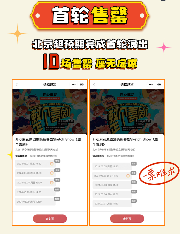 1.演出票品为特殊商品,除不可抗力因素导致演出取消外,订单不支持退换,可在平台转售; 2.演出详情仅供参考,具体以主办方公布信息及现场为准,请准时到场以免错过演出; 3.有票官方确保售出票品真实有效,请放心购买; 4.根据演出火爆情况,有票平台可能会将您所选的快递送票、上门自取等取票方式调整为现场取票,敬请谅解; 5.平台会尽力促使卖家履行交易协议,如果卖家付票过程中发生问题,本平台可协调相同或更高票挡的票品代替,否则平台将全额退款并按订单上约定的赔付方式与金额向用户进行赔付; 6.为了安全起见需要本人签收,演出快递票均为快递费到付(不包邮),请知晓!