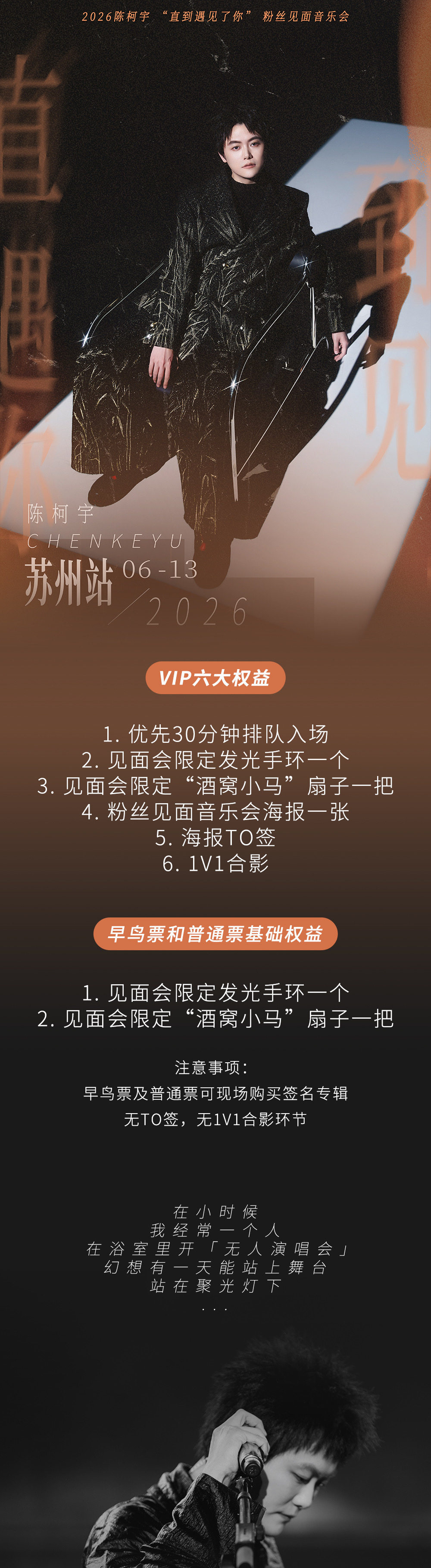 1.演出票品为特殊商品,除不可抗力因素导致演出取消外,订单不支持退换,可在平台转售; 2.演出详情仅供参考,具体以主办方公布信息及现场为准,请准时到场以免错过演出; 3.有票官方确保售出票品真实有效,请放心购买; 4.根据演出火爆情况,有票平台可能会将您所选的快递送票、上门自取等取票方式调整为现场取票,敬请谅解; 5.平台会尽力促使卖家履行交易协议,如果卖家付票过程中发生问题,本平台可协调相同或更高票挡的票品代替,否则平台将全额退款并按订单上约定的赔付方式与金额向用户进行赔付; 6.为了安全起见需要本人签收,演出快递票均为快递费到付(不包邮),请知晓!