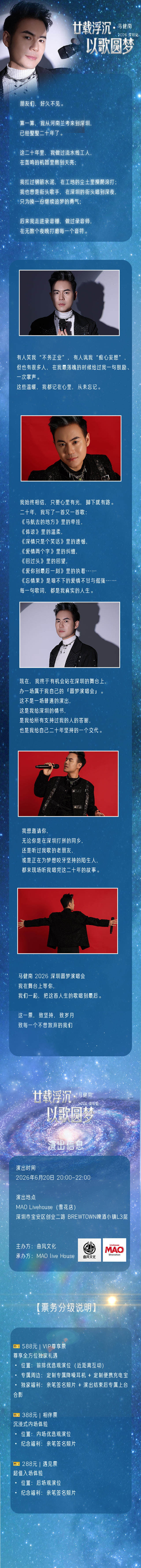马健南 《廿载浮沉.以歌圆梦》2026演唱会 深圳站