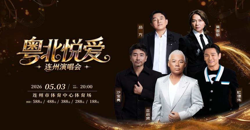 粤北悦爱・连州演唱会以 “悦享经典・爱在粤北” 为核心主题,集结华语乐坛四位殿堂级实力唱将 —— 吕方、杜德伟、巫启贤、沙宝亮、吴国敬,于粤北山水名城连州,献上一场跨越年代、融合情怀与实力的顶级音乐盛宴。五位歌手均为华语乐坛 “常青树”,累计拥有数十首国民级代表作,覆盖粤语、华语、流行、情歌等多元风格,从《朋友别哭》的温柔、《情人》的动感,到《太傻》的深情、《暗香》的经典,每一首都是刻在几代人青春里的旋律,打造 “全场合唱、青春回溯” 的沉浸式体验。