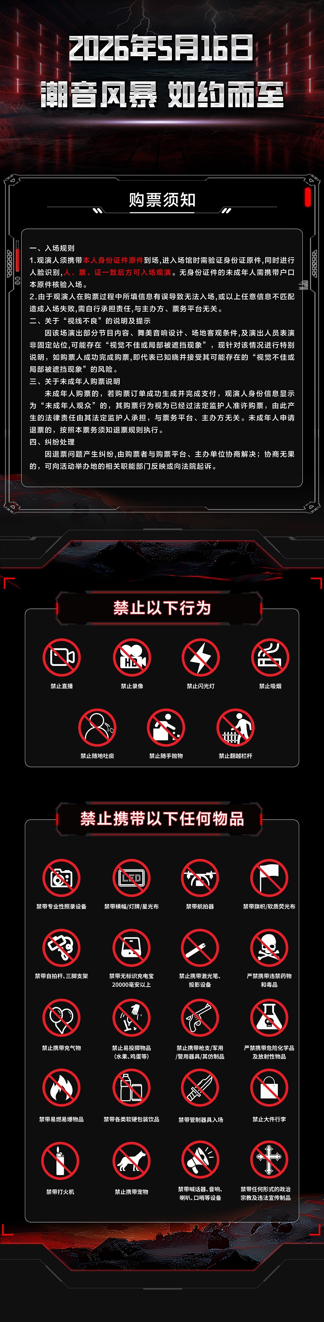1.演出票品为特殊商品,除不可抗力因素导致演出取消外,订单不支持退换,可在平台转售; 2.演出详情仅供参考,具体以主办方公布信息及现场为准,请准时到场以免错过演出; 3.有票官方确保售出票品真实有效,请放心购买; 4.根据演出火爆情况,有票平台可能会将您所选的快递送票、上门自取等取票方式调整为现场取票,敬请谅解; 5.平台会尽力促使卖家履行交易协议,如果卖家付票过程中发生问题,本平台可协调相同或更高票挡的票品代替,否则平台将全额退款并按订单上约定的赔付方式与金额向用户进行赔付; 6.为了安全起见需要本人签收,演出快递票均为快递费到付(不包邮),请知晓!