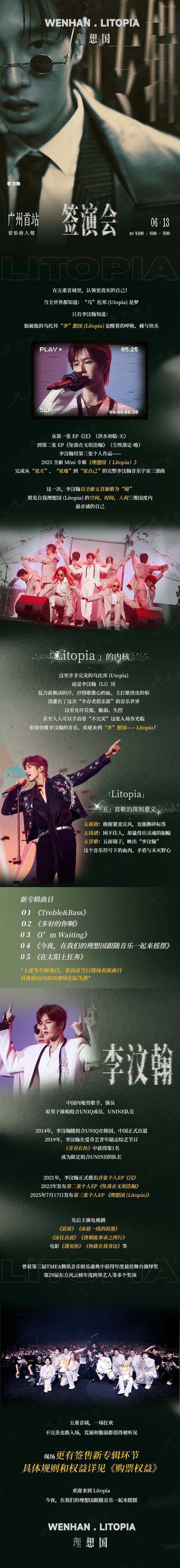 首页 > 演唱会 > 李汶翰新专辑《理想国》签演会-广州首站