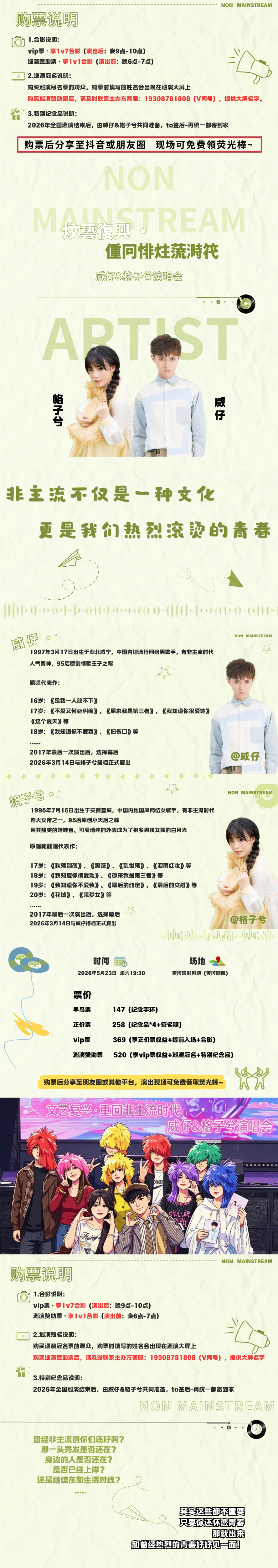 首页 > 演唱会 > 威仔&格子兮 |《文艺复兴·重回非主流时代》演唱会一天津站