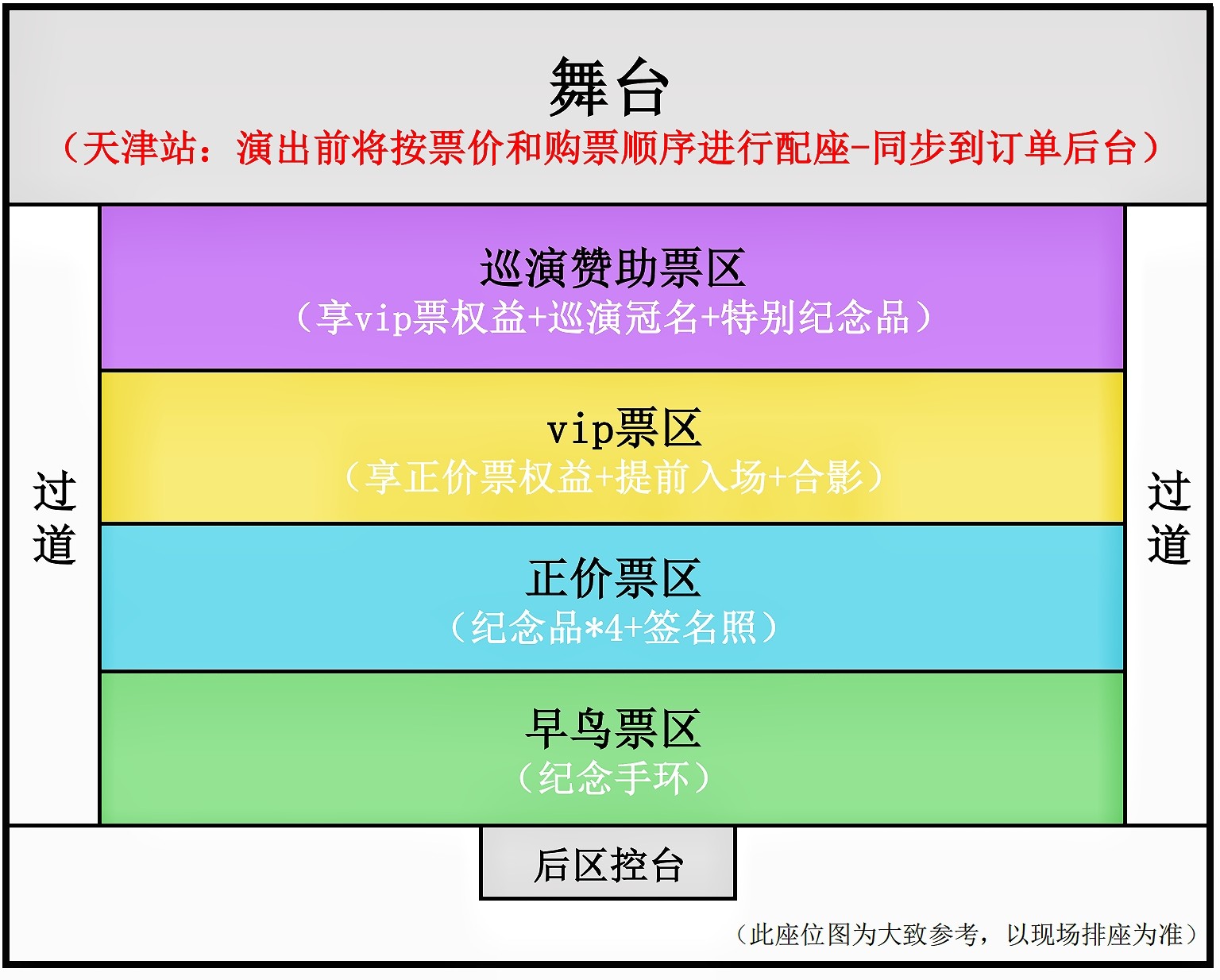 1.演出票品为特殊商品,除不可抗力因素导致演出取消外,订单不支持退换,可在平台转售; 2.演出详情仅供参考,具体以主办方公布信息及现场为准,请准时到场以免错过演出; 3.有票官方确保售出票品真实有效,请放心购买; 4.根据演出火爆情况,有票平台可能会将您所选的快递送票、上门自取等取票方式调整为现场取票,敬请谅解; 5.平台会尽力促使卖家履行交易协议,如果卖家付票过程中发生问题,本平台可协调相同或更高票挡的票品代替,否则平台将全额退款并按订单上约定的赔付方式与金额向用户进行赔付; 6.为了安全起见需要本人签收,演出快递票均为快递费到付(不包邮),请知晓!