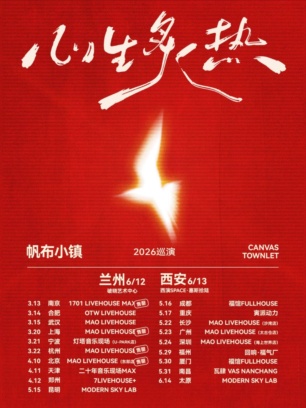 帆布小镇2026「心生炙热」全国巡演正式开启