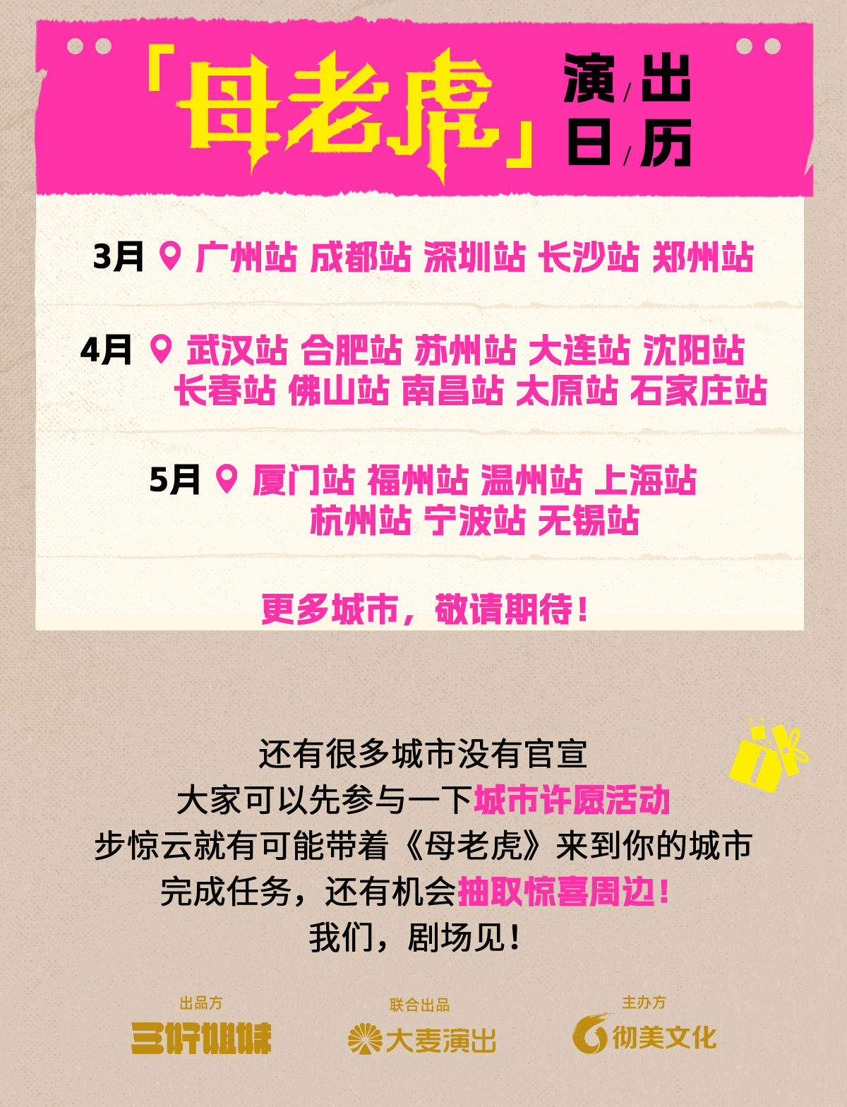 1.演出票品为特殊商品,除不可抗力因素导致演出取消外,订单不支持退换,可在平台转售; 2.演出详情仅供参考,具体以主办方公布信息及现场为准,请准时到场以免错过演出; 3.有票官方确保售出票品真实有效,请放心购买; 4.根据演出火爆情况,有票平台可能会将您所选的快递送票、上门自取等取票方式调整为现场取票,敬请谅解; 5.平台会尽力促使卖家履行交易协议,如果卖家付票过程中发生问题,本平台可协调相同或更高票挡的票品代替,否则平台将全额退款并按订单上约定的赔付方式与金额向用户进行赔付; 6.为了安全起见需要本人签收,演出快递票均为快递费到付(不包邮),请知晓!