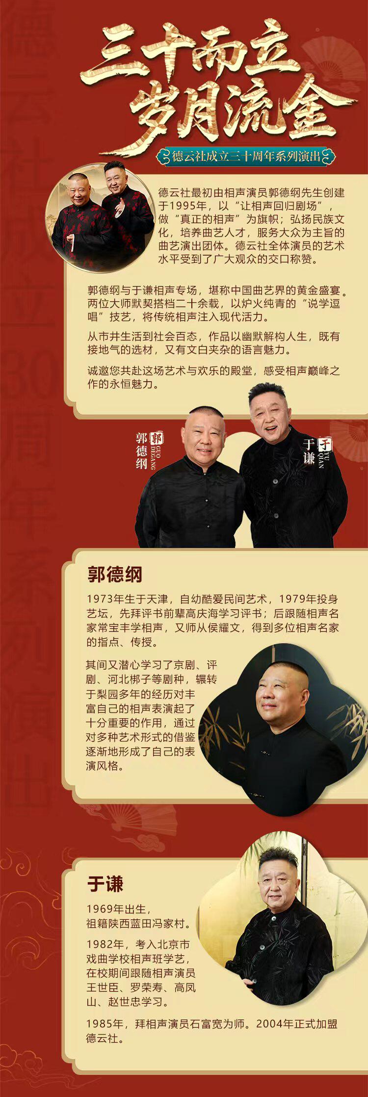“三十而立 岁月流金”2026德云社成立三十周年系列演出之郭德纲 于谦相声专场演出-上海站