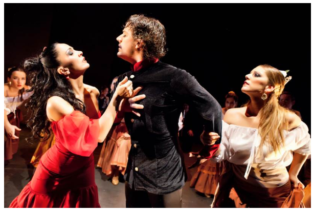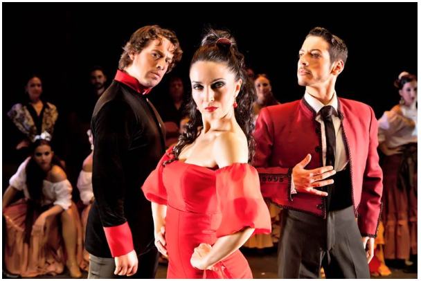 弗拉门戈“卡门” 在歌剧“卡门”的原著中,是由2个法国人还原了这个西班牙人和他的女人的传统故事。梅里美编写的这个悲剧和比才煽情的歌剧音乐贯穿了这首经典的歌剧的主旋律。卡门,这个从不屈服,为了爱情不惜死亡,甚至被误会成骗子的女人,她在舞台中的生命被剧情的需要而变的实在太短暂,同样她的爱情也是太短暂和被缩小。安东尼奥.安德拉达与他的西班牙塞维利亚弗拉门戈舞蹈团把“卡门”这个西班牙人心中的女神的故事,在比才的音乐基础上,继承了弗拉门戈的精髓,把这首作品带回了西班牙弗拉门戈的发源地塞维利亚。他们抓住了“卡门”这首作品的主体,注入了西班牙弗拉门戈发源地塞维利亚的弗拉门戈风格,演变成了一种崭新的弗拉门戈现代元素的风格。阿拉伯舞蹈,爵士,萨尔萨舞蹈让这首经典弗拉门戈作品更加的丰富多彩,当然整剧的主角弗拉门戈舞蹈发挥的淋漓尽致。西班牙当代著名作曲家多明戈.帕特里奇奥和胡安.雷奎纳与作品的制作人兼西班牙著名吉他大师安东尼奥.安德拉达一起多年前把这部全新的经典作品“卡门”成功的推向了全世界各地的重要艺术舞台。