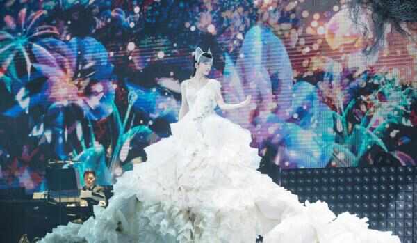 好友兼知名歌手古巨基担任演唱会总监,为女神量身定制"宫廷服"