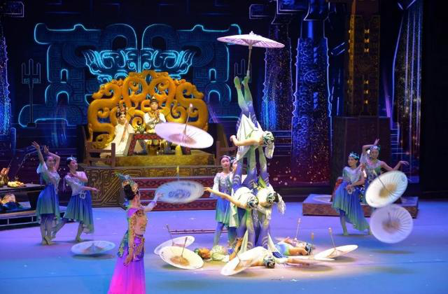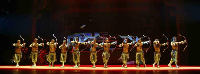 绚丽夺目的舞台效果、气势恢宏的背景音乐、精彩刺激的杂技舞蹈表演、凄美动人的爱情故事,带给观众一场别样的视听盛宴。精美的文物展示以多种形式贯穿整部剧的始终,并且采用视频加纱幕投影等科技手段,虚实交映,使舞台效果更震撼,带给观众极强的视觉冲击。
