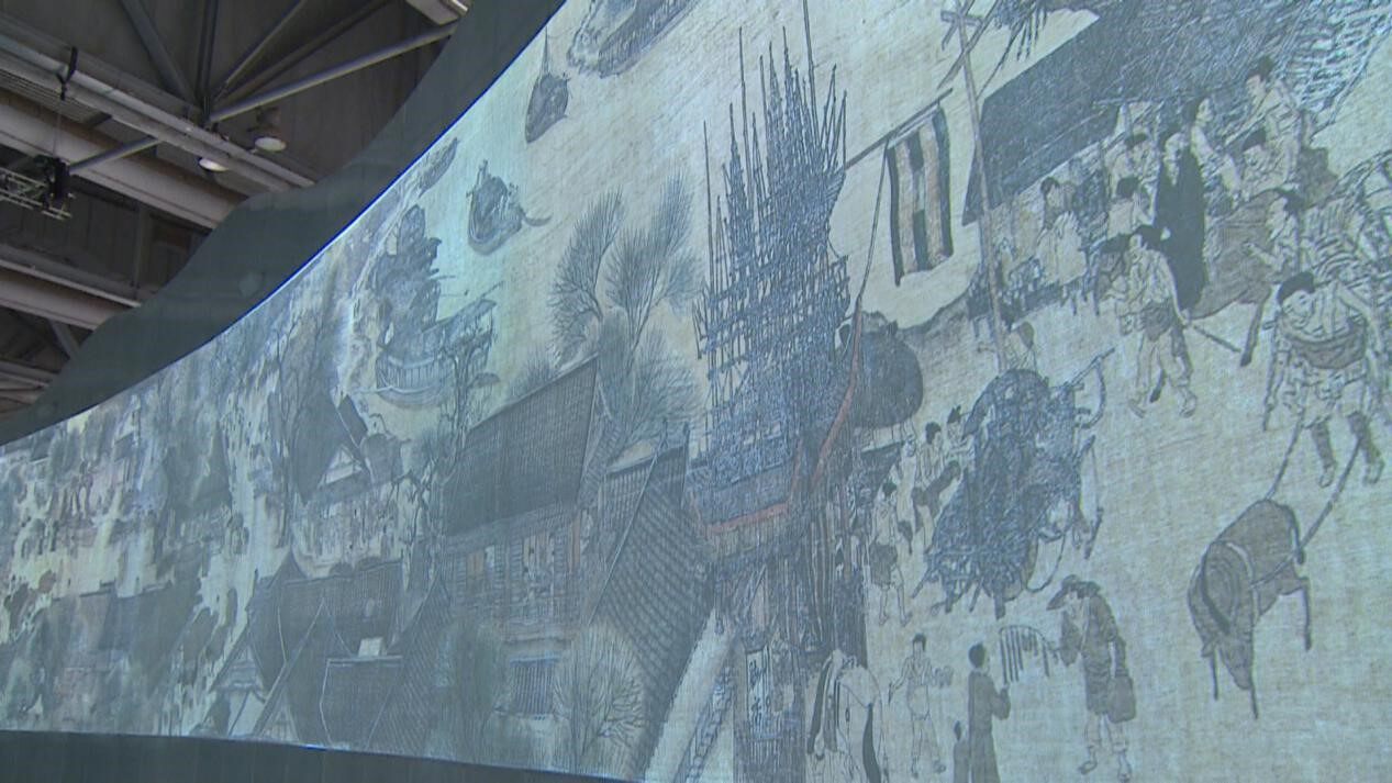 绍兴的文化被水贯穿,绍兴城水清岸绿,河网密布,湖泊众多,以"水乡泽国"著称。绍兴的乌篷船就像散落在水乡的黑曜石,在时光长河中熠熠生辉。坐上乌篷船,行过水门,铺展在眼前的,就是近5米高、30余米长的《清明上河图》盛世长卷,画中临街商铺、车马舟桥、贩夫走卒……全都"活"了起来,熙熙攘攘,热闹生动,犹如梦回宋朝,与张择端同游于900年前的汴京城。