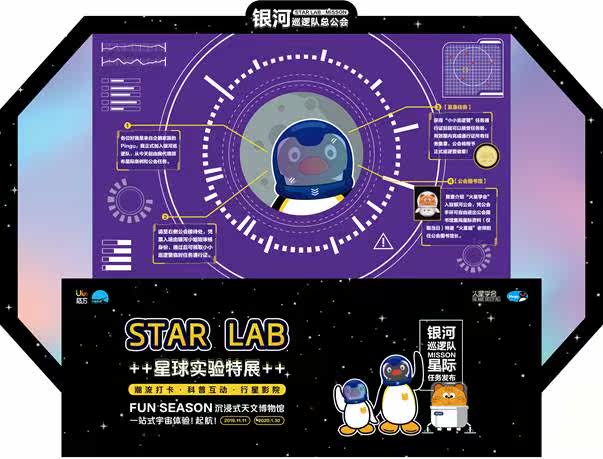 展览第二站银河巡逻队总公会成立,特邀企鹅家族"Pingu"、火星学会"火星喵"加入公会协助管理,发布星际小小巡逻警任务。