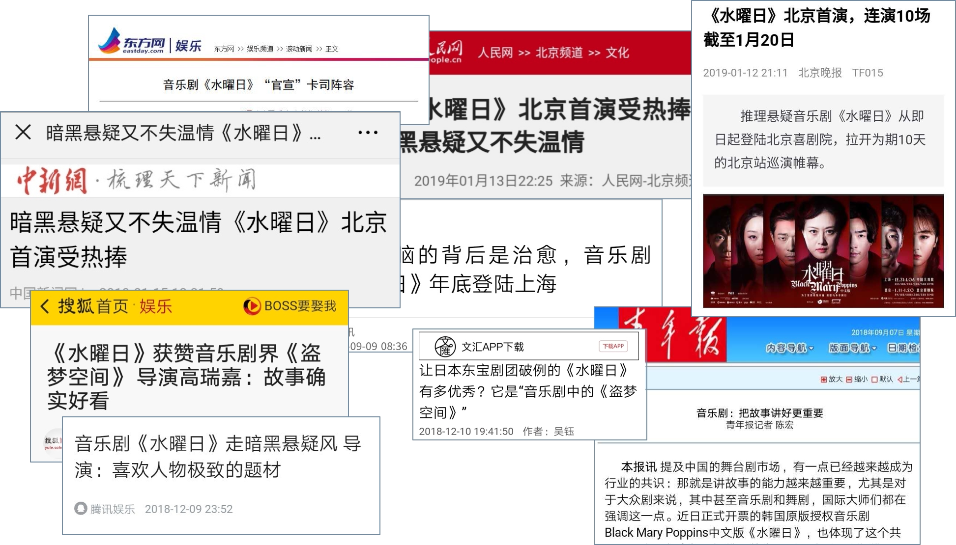 2018年,Black Mary Poppins首次登陆中国,中文版《水曜日》由中韩一线音乐剧制作团队联袂倾力打造,第一季大获成功,反馈热烈。