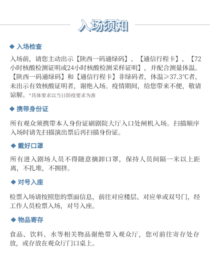 自9月7日起,所有进入西安浐灞保利大剧院人员均须出示:72小时内核酸阴性结果证明或 24小时内核酸采样证明