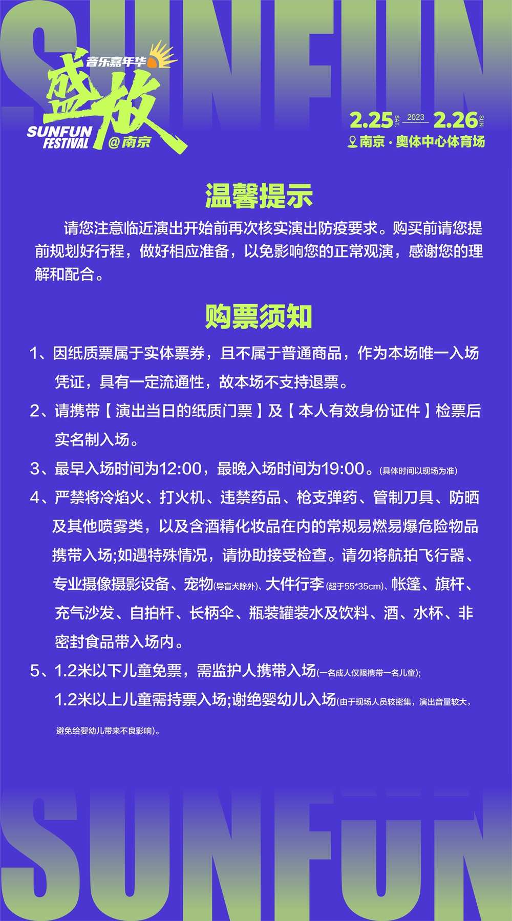 1.演出票品为特殊商品,除不可抗力因素导致演出取消外,订单不支持退换,可在平台转售; 2.演出详情仅供参考,具体以主办方公布信息及现场为准,请准时到场以免错过演出; 3.有票官方确保售出票品真实有效,请放心购买; 4.根据演出火爆情况,有票平台可能会将您所选的快递送票、上门自取等取票方式调整为现场取票,敬请谅解; 5.平台会尽力促使卖家履行交易协议,如果卖家付票过程中发生问题,本平台可协调相同或更高票挡的票品代替,否则平台将全额退款并按订单上约定的赔付方式与金额向用户进行赔付; 6.为了安全起见需要本人签收,演出快递票均为快递费到付(不包邮),请知晓!