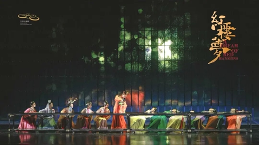 民族舞剧《红楼梦》以贾宝玉与林黛玉、薛宝钗的爱情为主线,在秉承尊重原著的原则同时,邀请了年轻且具有丰富想象力和创新追求的优秀艺术家为其注入独特的现代审美和意义。视觉上借鉴明清古画的美学特质,旨在展现端庄古雅的舞蹈群像;多处运用了富有中国特色的古典符号,既是对中华民族优秀传统文化的致敬,也以年轻一代视角对民族文学经典进行重新演绎。