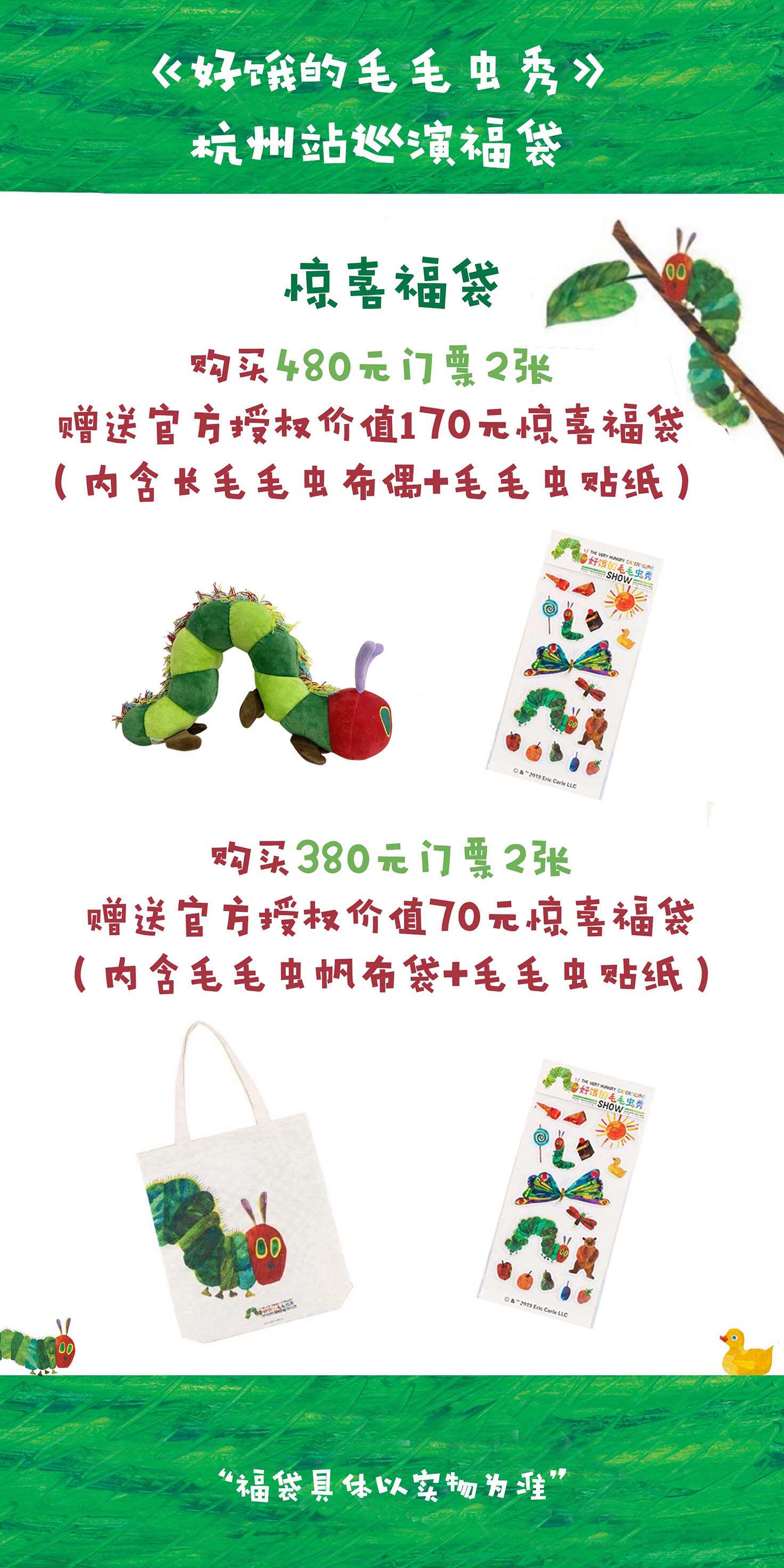 购买380价位演出票2张,赠送毛毛虫帆布袋+平面贴纸。