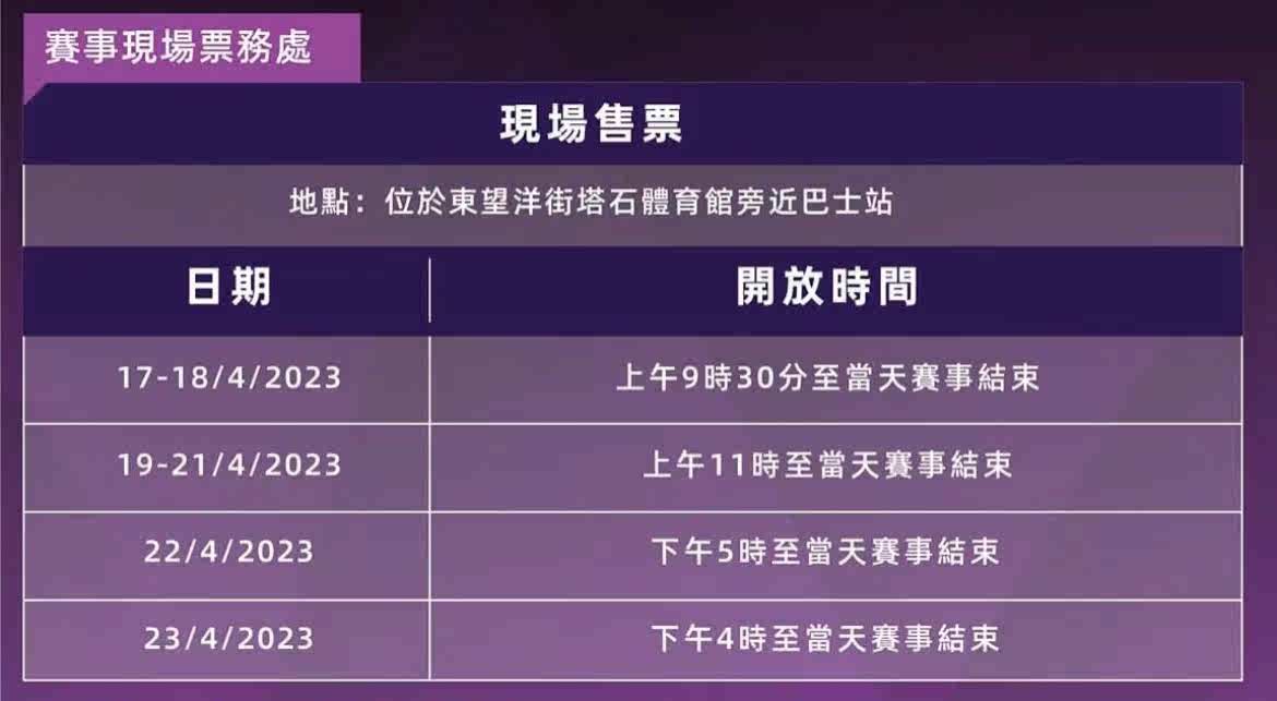 4 月 17 至 21 日之普通门票设有购票优惠,一次购买同一赛事日同一场次 4 张普通门票可享九折优惠。