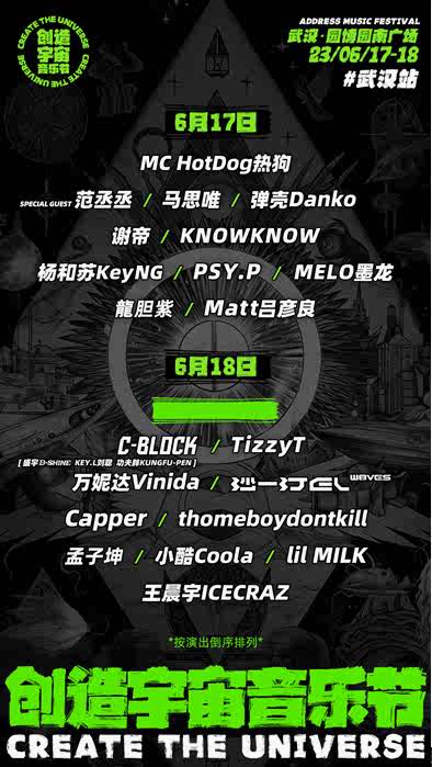 2023,开启你的耳道新宇宙,乐坛新血液唱作歌手范丞丞首次音乐节开唱,Sup Music与成都集团世纪同台,率先高燃开场!新生代实力rapper集结,邀你一起聆听Z时代的超强频率!更有神秘嘉宾强势助阵,超强声浪在宇宙中汲取能量,在你的内心最深之处爆发!