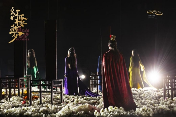 演出形式则是借鉴了章回体小说结构,用十二个篇章讲述了宝玉与十二钗情缘聚散:不仅在外在形式上与一百二十回的原著构成有关“轮回”的呼应,同时紧扣小说“因空见色,由色生情,传情入色,自色悟空”,映照曹雪芹对于人生无常、生命无序的哲学感慨。