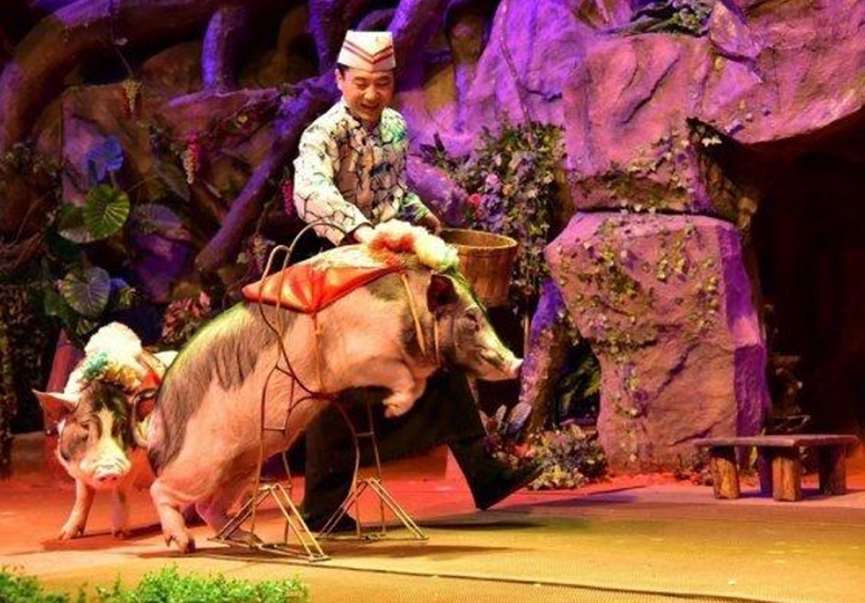 聪明的小猪给小朋友带来欢乐的表演。他们也是会各种绝活的哦