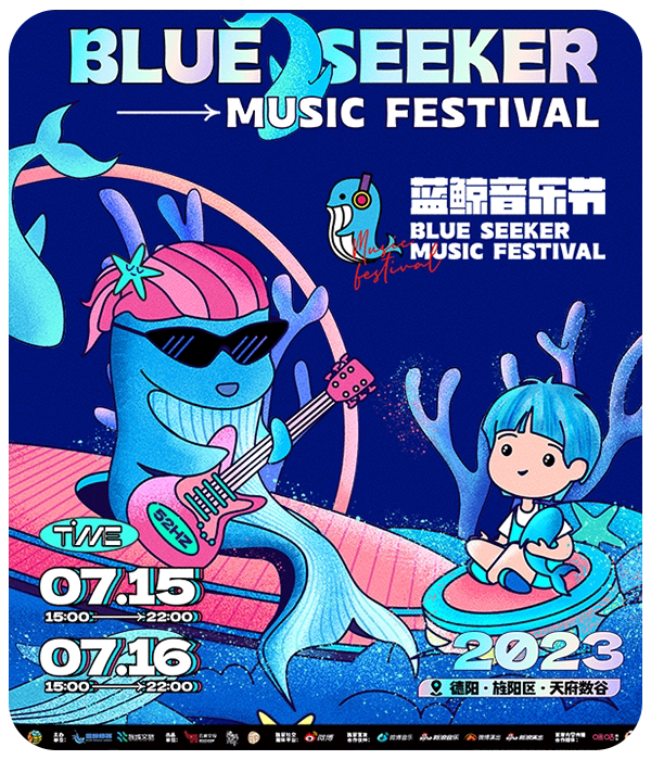 2023德阳蓝鲸音乐节是集年轻、多元、新锐、艺术、时尚为一体的大型青年潮流音乐文化活动,7月15日-16日在四川德阳旌阳区天府数谷举办,将以“每一刻,都是鲸喜”为主题,周震南、队长、NINEONE赵馨玥等超30组参演艺人倾情加盟,以嘻哈、流行乐——鲸声舞台、鲸灵舞台、音乐氛围——鲸游舞台三大舞台为主,潮流文化市集、蓝鲸元素装置等功能配置为辅,超酷炫科技舞美技术,重金打造顶级舞台,加入崭新元素精心设计,全新的灯光和视觉效果设计极具震撼感,每个舞台都将献上长达8小时的精彩演出,通过多种数字传播手段,作屏幕投射,为观众呈现一场沉浸式的音乐饕鬄盛会。音乐节现场还将呈现主题IP艺术装置、美食、文创、U型滑板、拳击体验、蜘蛛人、大型泡沫凉爽体验等精彩项目,现场还将进行明星周边及专属纪念品签售。