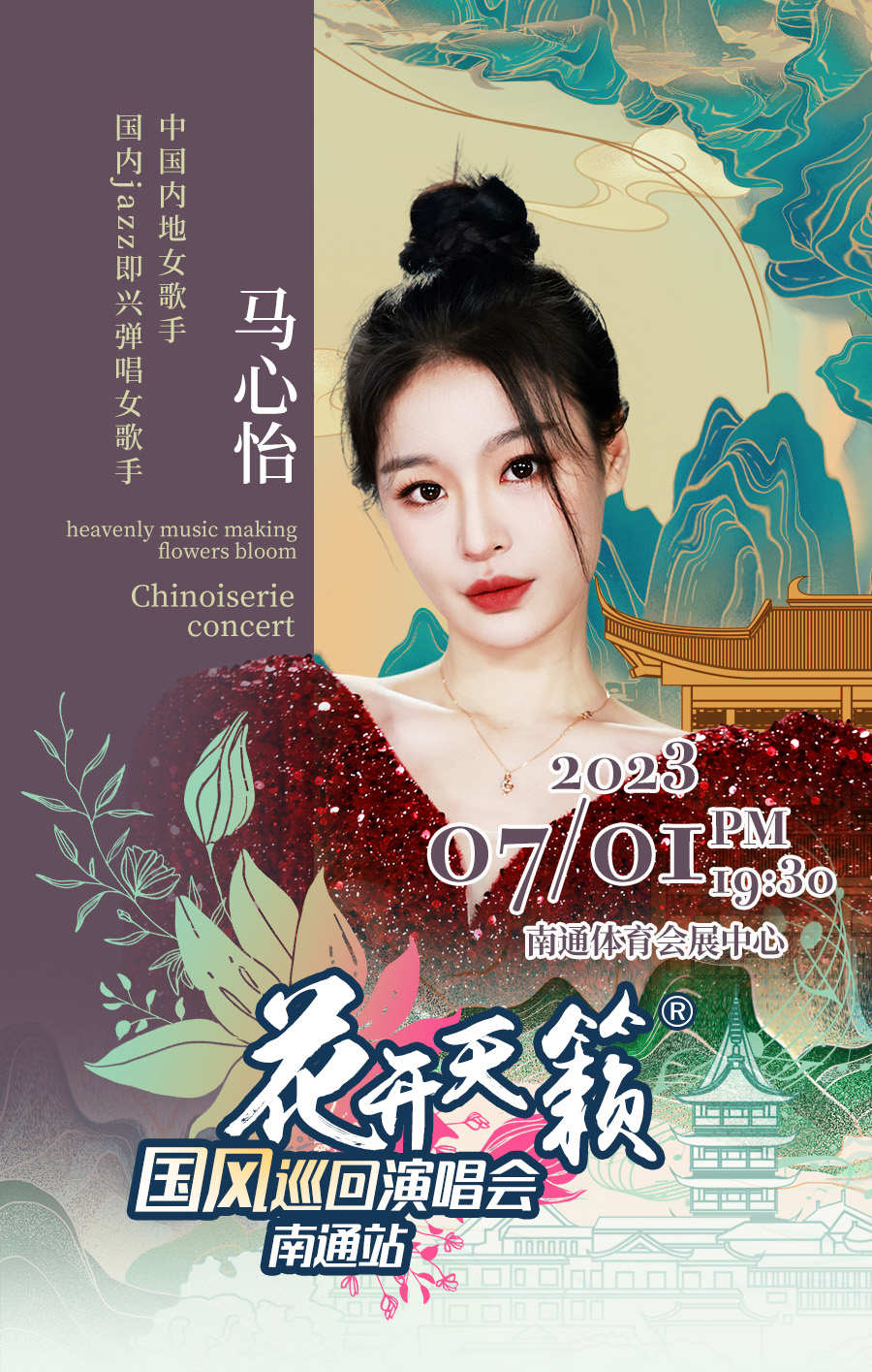 中国至美,倾城追寻。7月1日,江海大地,江苏南通,将迎来实力唱作歌手汪苏泷,相信:一曲《剑魂》将打动你的《心门》;天赐的声音《就让这大雨全都落下》,开口瞬间,注入灵魂;中国当代音乐先锋人物萨顶顶、无可抵御的《万物生》《不染》《左手指月》,将演绎出什么是心灵震撼!“最洗耳暖心的国风歌者”刘珂矣的《闲庭絮》《半壶纱》让你整个夏季,飘飘欲仙;“国风二次元”西瓜JUN,将让“Z世代”展现出强大底气和文化自信,整个暑期,能量向上!